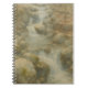 A serene watercolor-style depiction of a mountain stream cascading gently over smooth rocks, surrounded by bare trees and a misty, muted forest. The soft tones and flowing water evoke a sense of calm and introspection, as if nature itself is quietly whispering in the silence