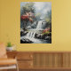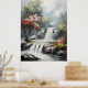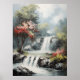 The poster depicts a serene, breathtaking landscape with a cascading waterfall as its focal point. The water tumbles gracefully over jagged rocks, creating a soft mist that rises into the air, adding a sense of tranquility to the scene. Vibrant fall foliage bursts with rich shades of amber, gold, and crimson, evoking the warmth and beauty of autumn. Tall trees with dense canopies frame the composition, their leaves rustling gently in the breeze. The soft matte finish of the poster enhances the quiet, peaceful atmosphere, while the rich colors and natural elements invite the viewer to pause and take in the beauty of this serene, untamed corner of nature.
