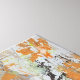 Impressionistic trees line a calm body of water, their reflections creating a mirrored effect. Soft autumn hues of orange and green are set against a muted background, emphasizing a serene and tranquil environment.