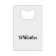 Shows the word "Whistler" in a nice black script text font with a red Canadian maple leaf dotting the "i." Whistler is popular with Canadians, Americans, and other travelers for winter sports.