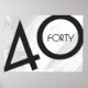 It's a milestone birthday, the big 40. Celebrate in style with our trendy type design in black and white with our signature white texture behind the black type. It's just a round number is inside the large 0 of 40 at a jaunty angle. Custom designs available.