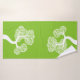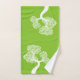 White abstract circle tree and name lime green bath towel set