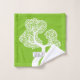 White abstract circle tree and name on lime green bath towels set. This lovely, design displays a white abstract tree with circles instead of leaves on all three pieces on green background and a frame with name on the wash cloth. You can remove the name if desired.