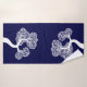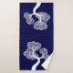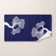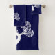 White abstract circle tree and name navy blue bath towel set