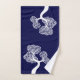 White abstract circle tree and name on navy blue bath towels set. This lovely, design displays a white abstract tree with circles instead of leaves on all three pieces on blue background and a frame with name on the wash cloth. You can remove the name if desired.