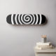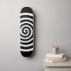 White Abstract Spiral Circle on Black Skateboard