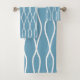 Elegant modern white abstract wavy geometric pattern on teal Towel Set.