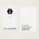 This keychain display card features a simple black and white design. It depicts a pinstripe black border, a place to add your logo, and matching modern typography. On the back, it includes contact information that can be changed completely or personalised to your details. It's a professional, elegant, and stylish way to display your product with pride. (keychain lines are printed markers only, cutting must be completed by the customer)