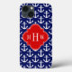 White Anchors Navy Blue, Red 3 Initial Monogram Case-Mate iPhone Case