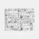 White background with dark text, Classic combination of black and white appeals to older boys or modern aesthetic. Cool repeating name pattern. Put the baby boys kid's name all over this colourful creation of creative typography. Vibrant assortment of fonts with first name or chosen word repeated all over. Celebrate any occasion with a personalised custom name collage gift blanket, perfect for a children's birthday, Custom Christmas gift idea or to celebrate a new baby!