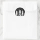 Whimsical design featuring white Christmas trees on a black background with a few scattered snowflakes.