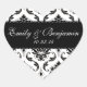 White and Black Damask Wedding Favour Heart Sticker