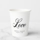 Paper cups with the word "love" in stylish cursive type. Perfect for wedding showers, engagements and wedding anniversaries.