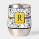 This insulated wine tumbler has a stylish, feminine floral pattern with a hand-drawn aesthetic. This classic black-and-white pattern has a modern feel softened with sketch look line art. Personalise this cute insulated wine tumbler with the owner's initial in yellow for extra personal detail. This design has six (6) different accent colours: red, pink, yellow, green, blue, and purple to highlight your monogram. Choose your favourite colour. This custom wine tumbler with your monogram is the perfect accessory for art walks, gallery strolls, wine tastings, parties, and outdoor events.