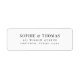 This modern classic wedding return address features the names of the wedding couple and address in black against a white background colour.