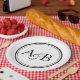 Serve guests with personalized wedding plates by adding initials inside the double borders. An ampersand sits between the initials on a white background.