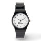 This casual simple minimalist modern mens wrist watch is decorated with a white background, black letters, black silicone band, and personalised with your name. You can easily change the name and delete the black numbers if desired. What a wonderful gift for a groomsman, best man, graduation, father's day, birthday, or any other special occasion. All Rights Reserved © 2023 Alan & Marcia Socolik.