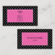 Black and white polka dot pattern. White polka dots on black and in the middle there is a hot pink rectangle to add your information.