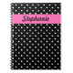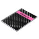 Black and white polka dot pattern. White polka dots on black and in the middle there is a hot pink rectangle where you can add your text.
