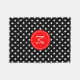 Elegant white polkadot geometric pattern over customisable black background colour. Red circle accent with customisable monogram.