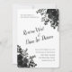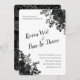 Our black and white floral rose gothic wedding invitations are made to match out Gothic Black Rose Wedding Collection. Dark black and bright white contrast with an abundance of dark floral motifs. Script font paired with serif font, lends to an artistic look that matches well with gothic style.