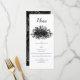 Our black and white floral rose gothic wedding menu are made to match out Gothic Black Rose Wedding Collection. Dark black and bright white contrast with an abundance of dark floral motifs. Script font paired with serif font, lends to an artistic look that matches well with gothic style.