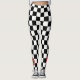 White And Black Square And Red Flower Leggings