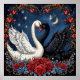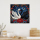 White and Black Swans with Hearts and Roses Poster