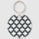 White and Black Trellis, Lattice, Quatrefoil Key Ring