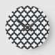 White and Black Trellis, Lattice, Quatrefoil Round Clock