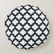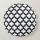 White and Black Trellis, Lattice, Quatrefoil Round Cushion