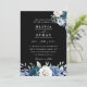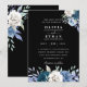 white and blue floral black wedding invitations