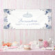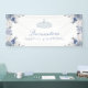 White and Blue Floral Quinceanera party banner. Designed with delicate blue and white flowers accented with a sparkling diamond and light blue gem crown. This beautiful banner is a perfect addition to your quinceanera decor.