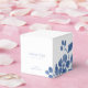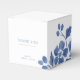 This blue and white wedding favour box exudes a fresh, modern and youthful tone. The design features a lovely blue floral illustration, "thank you" text with couple names, date and place in a contemporary set of dusty blue fonts. This item forms part of a larger wedding suite with matching items and design theme.