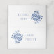 This blue and white folded wedding place card / table number exudes a fresh, modern and youthful tone. The card features a table number and floral illustration at the front and back in a chic dusty blue, against a crisp white background. This item forms part of a full wedding suite with matching and complimentary stationary.