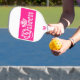 White and Bright Pink Queen Crown Modern Monogram Pickleball Paddle