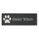 Modern charcoal and white paw print logo name tag. Perfect for pet groomers, vets, dog walkers and doggy day cares.