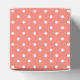 White and coral pink polka dot with black design thank you stamps. Small white polka dots on a coral pink background.