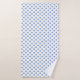 This cute bath towel set features soft cornflower blue polka dots in different sizes on a background of solid white.