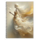 An ethereal fairy in a billowing golden dress, holding a flower, set against a serene background in minimalist abstract art. Delicate brushstrokes, misty atmosphere, and subtle lines create a graceful and ghostly presence with smooth transitions and blurred edges. The tranquil ambiance and dreamy atmosphere are enhanced by a colour palette including Dutch White