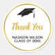 White and Faux Gold Graduation Thank You Classic Round Sticker