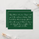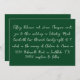 The wedding details are listed in a handwritten style, white text. The back of the invitation is a solid forest green with white text for the date.