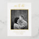 White And Gold Calligraphy Photo Save The Date Foil Invitation. This custom modern wedding design can easily be personalised with your own wedding details.