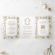 White and Gold Chinoiserie Crest QR Code Wedding Tri-Fold Invitation