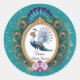 White and Gold Colourful Peacock Baby Shower Classic Round Sticker