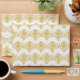 Elegant envelope featuring beautiful faux gold foil texture on the inside and gold damask pattern on the outside.