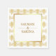 Elegant paper napkin featuring a faux gold foil border against a beautiful gold damask background.