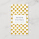 Business card in white featuring a faux gold dotted pattern and a faux gold frame.