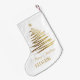 White And Gold Elegant Christmas Tree Small Christmas Stocking. Personalize with your name.