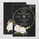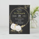 elegant romantic white flowers and gold leaves on a gold circle wreath luxury black birthday party invitation